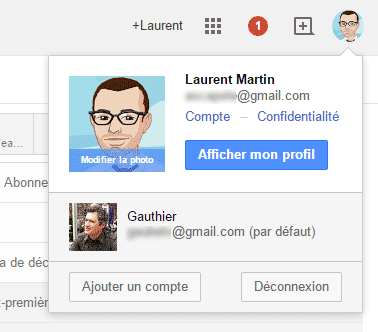 Un simple clic sur votre photo ou sur l’adresse e-mail, toujours en haut à droite, fait apparaître la liste des comptes ouverts. Vous choisissez celui à consulter, et le tour est joué.