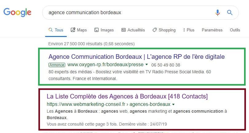 Dans la recherche Google, deux approches se côtoient : d’un côté, grimper en tête des résultats naturels (SEO, ou référencement organique) ; de l’autre, figurer dans les premiers liens payants via Google Ads.