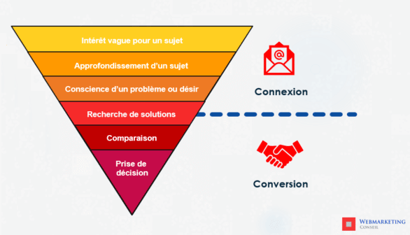 Comprendre le cheminement mental de vos clients vous permet d’anticiper à quel stade ils recherchent soit une solution générale, soit un prestataire précis.