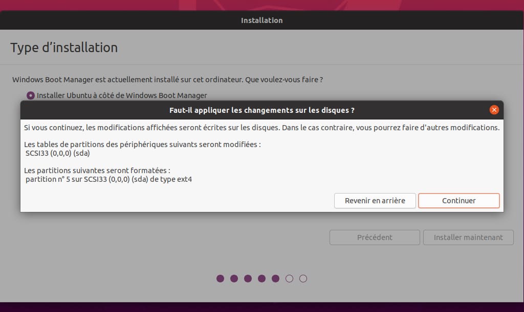 - Poursuivez, tout est prêt pour accueillir Ubuntu 20.04 LTS.