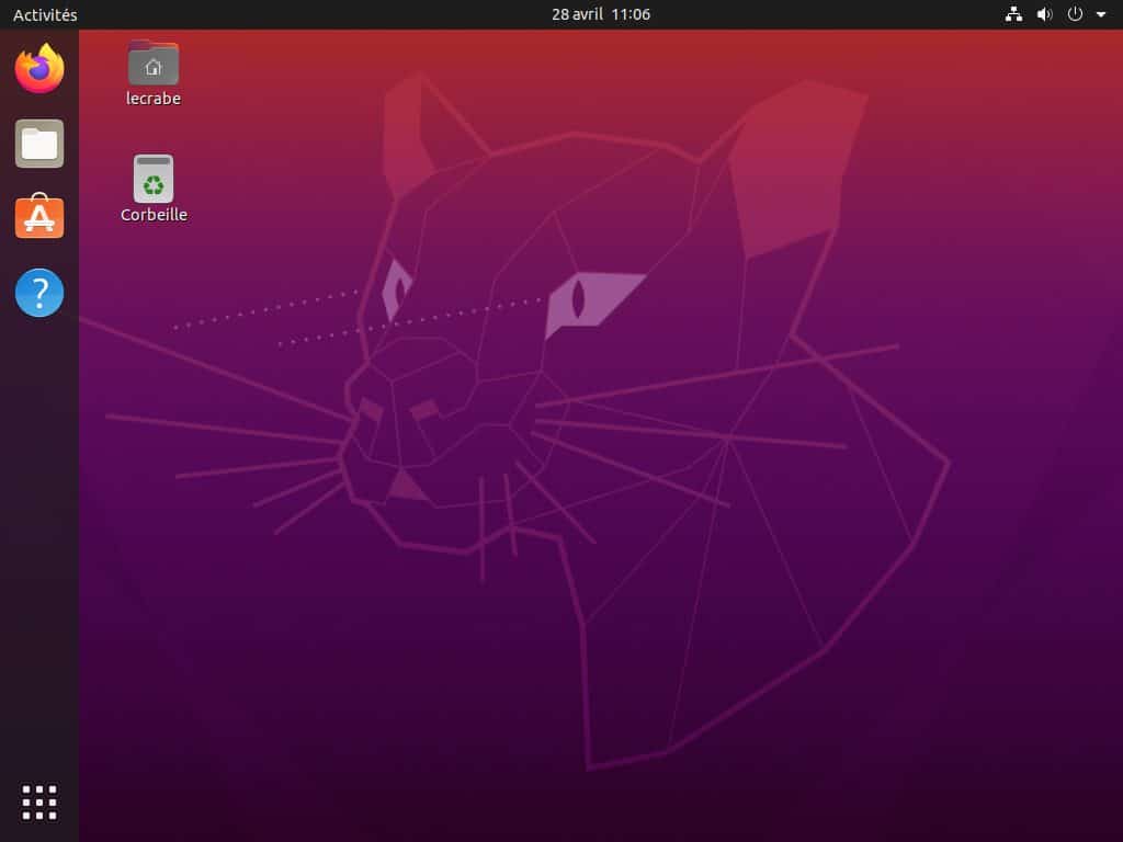 - Vous découvrez alors le bureau Ubuntu 20.04.