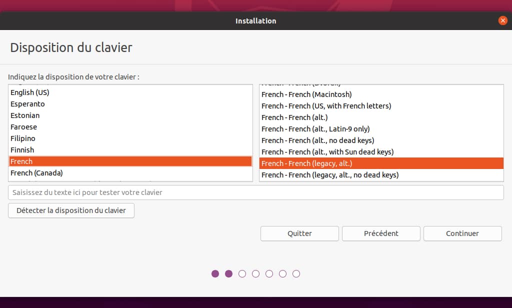 - Précisez la disposition de clavier voulue : Français ou Français (Legacy), selon votre usage.