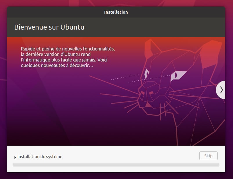 - L’installation de Ubuntu 20.04 LTS débute.