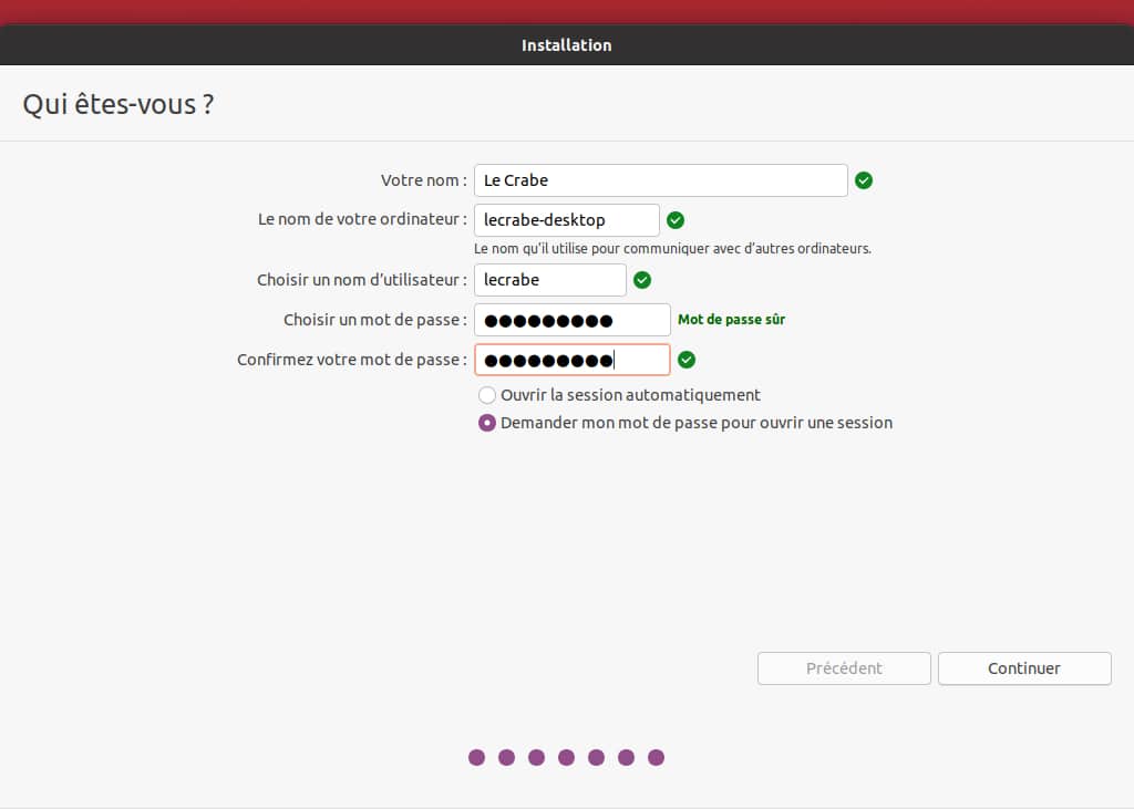 - L’installateur Ubuntu (Ubiquity) démarre. Choisissez la langue, confirmez avec Installer maintenant.