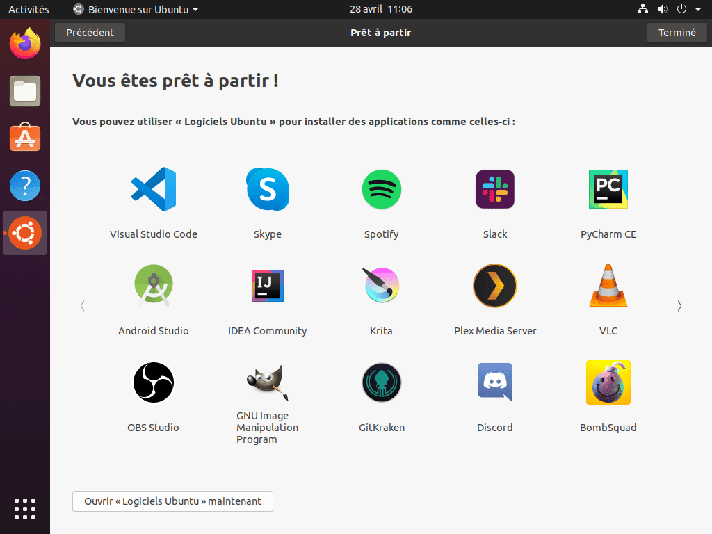 - Ubuntu est maintenant prêt. Terminez l’assistant.