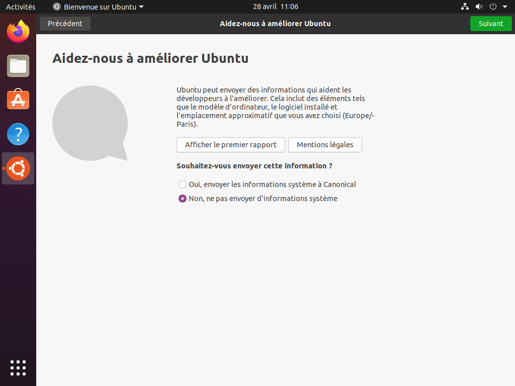 Libre à vous d’accepter ou non l’envoi d’informations matérielles à Ubuntu.