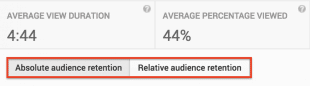 Deux types d’analyse sont proposés : la rétention absolue et la rétention relative. Pour naviguer de l’un à l’autre, sélectionnez une vidéo dans la liste sous le graphique de fidélisation, puis faites défiler pour afficher le choix du filtre.
