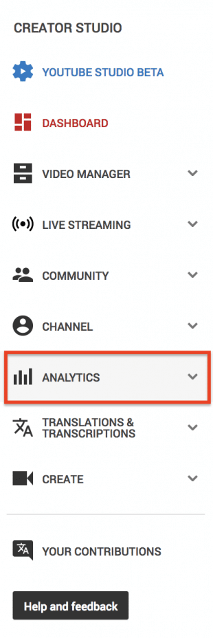 - Sur la gauche, ouvrez le menu et cliquez sur Analytics pour accéder à l’interface principale d’analyse de YouTube.